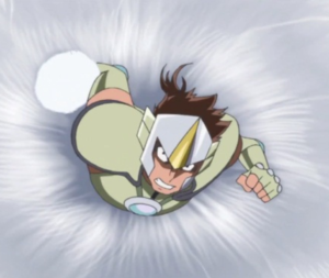 Paradise ganha impulso através de ventos que o cercam como um tufão, depois, canaliza o vento que o impulsionava na forma de um soco carregado de vento.